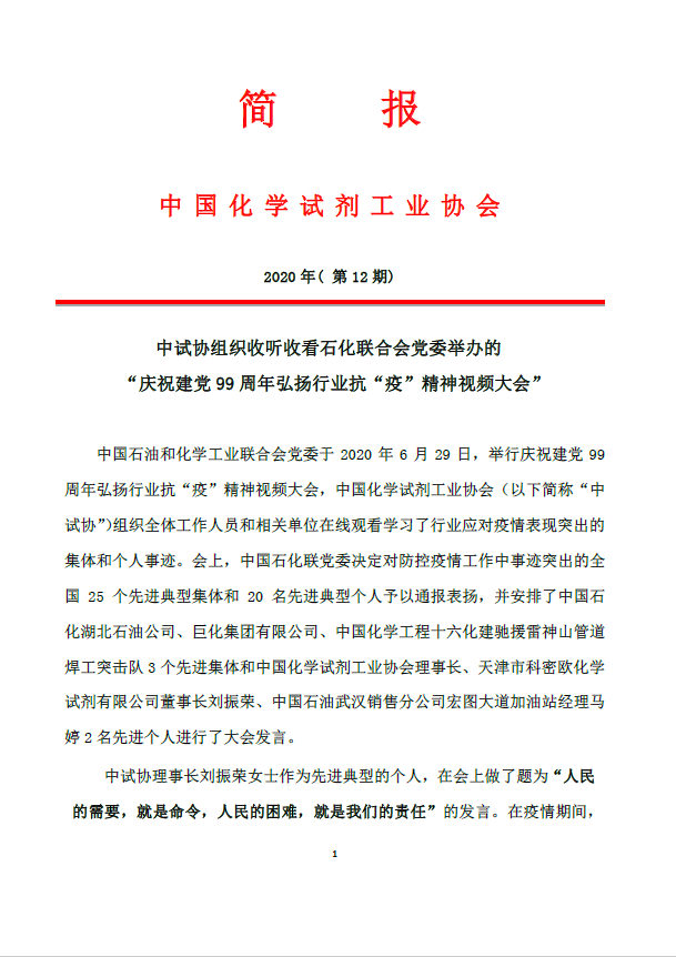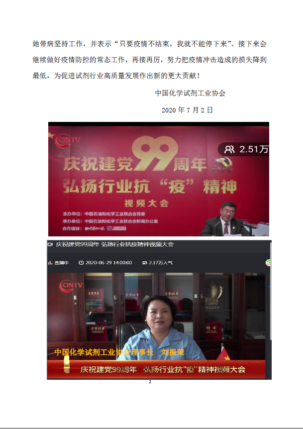 觀看 “慶祝建黨99周年弘揚(yáng)行業(yè)抗“疫”精神視頻大會”(2020 第十二期簡報)