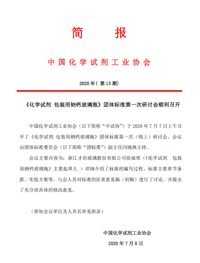鈉鈣玻璃瓶研討會(huì)順利召開 (2020 第十三期簡報(bào))