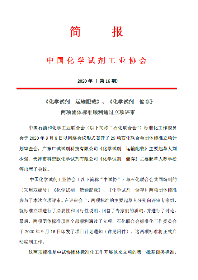 化學(xué)試劑運(yùn)輸配載 、儲(chǔ)存順利通過立項(xiàng)評(píng)審(2020 第十六期簡(jiǎn)報(bào))