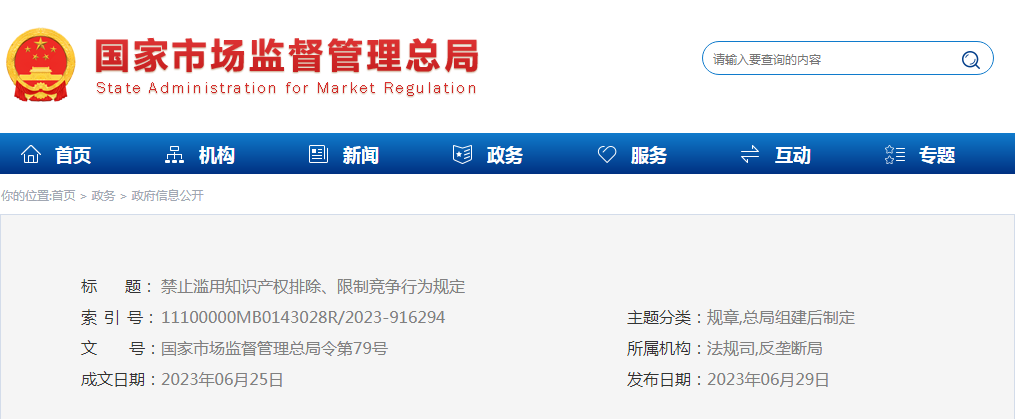 市場監(jiān)管總局出臺《禁止濫用知識產(chǎn)權(quán) 排除、限制競爭行為規(guī)定》